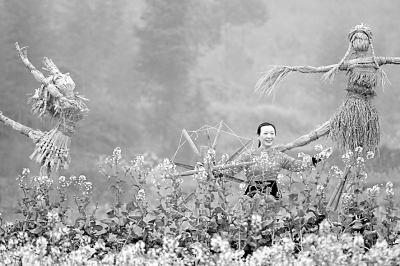 3月19日,演员在油菜花田中进行民俗表演。当日,第三届浙江油菜花节在仙居县开幕,8万余亩金黄的油菜花和丰富的民俗表演吸引众多居民和游客前来观赏。新华社发(鞠焕宗摄)