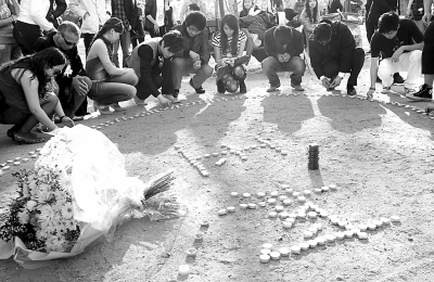| 四月十八日,在法留学生在巴黎埃菲尔铁塔附近点燃蜡烛为灾区祈福。当日,中国在法留学生在埃菲尔铁塔附近为中国青海玉树地震灾区举行仪式,为地震灾区祈祷,为抗震救灾加油。 新华社记者 张玉薇摄 |