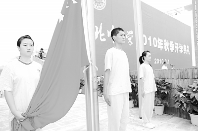 ③北京市西中街小学与北新桥小学在西中街小学操场上联合举行开学典礼。这两所小学刚刚结为手拉手联盟学校。 刘丽景、周良摄