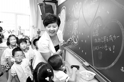 该校六(2)班的铁澎斌说:“我要比以前更加爱护我们的新学校和我们的新教室。”