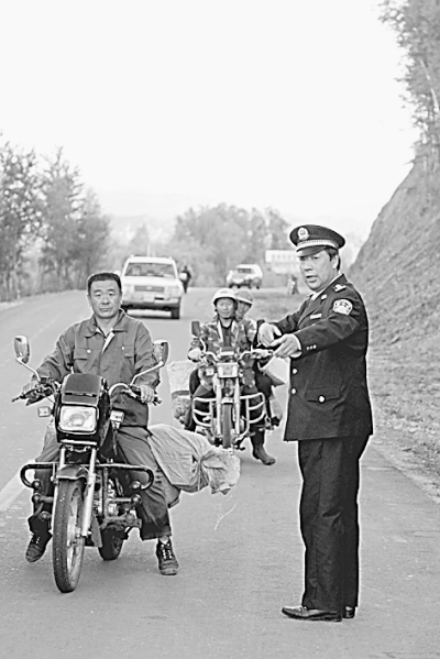 8月31日,一名森林公安干警在大兴安岭林管局满归林业局辖区管护站为野外采摘的林区居民引路。为减少森林资源隐性消耗、提高森林资源管护水平,从2009年开始,大兴安岭林管局开始大规模生态移居工程,同时投资2亿多元改善各管护站、生产工队森林公安干警和护林员的工作生活装备条件,森林管护水平和一线林业职工生活质量明显提高。新华社记者 张领摄