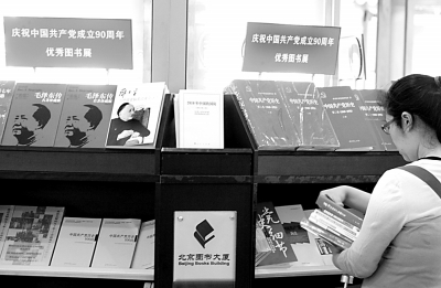 5月27日,一位读者在北京图书大厦庆祝中国共产党成立90周年优秀图书展台前选购图书。其所展出的200余种图书受到读者的欢迎。本报记者刘新武、杨慧峰摄