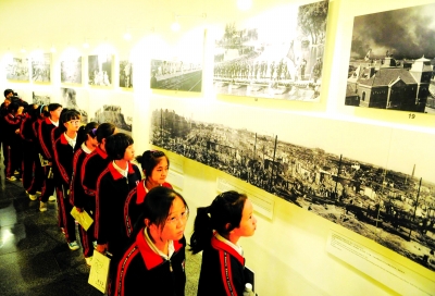 十月八日,学生们在中华世纪坛参观“大道之行——纪念辛亥革命一百周年影像展”。本次展览展出了从世界各地万余幅历史图片中遴选的一百二十张珍贵历史照片。新华社记者 李晓果摄