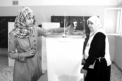 7月7日,选民在利比亚首都的黎波里的一个投票站参加议会选举投票。利比亚国民议会选举投票当地时间7日8时正式开始,共有2639名独立候选人以及来自374个党派和政治团体的候选人参与200个议会席位的角逐。 新华社发