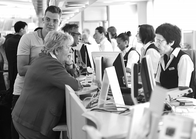 9月4日,在德国首都柏林的泰戈尔机场,乘客在汉莎航空票务柜台改签机票。德国工会“独立空乘组织”当日在法兰克福、柏林和慕尼黑3地的机场组织了新一轮罢工。截至柏林时间10时30分,罢工已迫使汉莎取消了319架次航班。 新华社记者 马宁摄