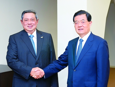 胡锦涛指出,当前,亚太地区总体保持较快发展势头,但也面临不少挑战。中国和印尼应该牢牢把握本地区发展正确方向,坚持以发展为主题,推进地区各方面合作。通过对话协商妥善处理南海问题符合有关国家共同利益。中方愿同东盟国家一道,积极落实《南海各方行为宣言》,推动南海务实合作,共同维护本地区和平稳定。中国和印尼在维护南海和平稳定方面有广泛共同利益,中国重视印尼的地位和影响,赞赏印尼发挥的建设性作用,愿同印尼共同努力,维护东亚团结合作。