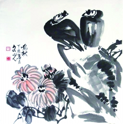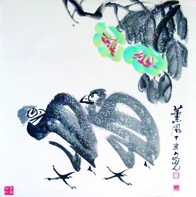 张文光,1931年生于山东高密,中国美术家协会会员,国家一级美术师。他的花鸟画以“简”为特色,不拘泥于外形繁琐的细节,而在大略轮廓的基础上把握其神态,加以重点刻画,构图单纯,黑白、虚实关系分明。(罗 兰)