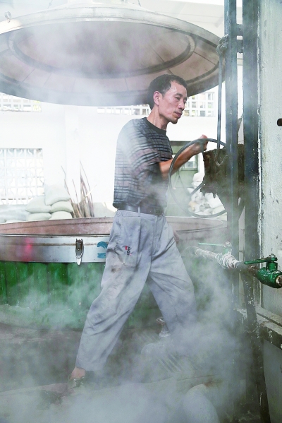 离开酒厂时,烤酒车间的一位班长陈兴安正在奋力转动轴轮,酒甑的盖子缓缓升起,蒸汽裹挟着浓烈的香气,遮住了他的身形,气流的涌动让他若隐若现,传统工艺的魅力在这里跳跃着生命的美感。(蒋新军 撰文/摄影)