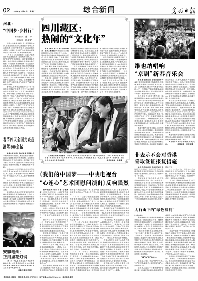 当天演出的曲目有《梨花颂》《龙凤呈祥》《打龙袍》《小宴》《贵妃醉酒》等。今年“《一脉千秋》2014中国京剧新年音乐会”演员阵容强大,有约20位国家一级演员参演,有梅派的旦角、麒派的老生,还有马派、裘派、余派、杨派等代表,有大陆著名京剧演员,也有来自台湾的梅派传人。演出期间,叫好声和掌声不断。尤其是老外观众“现学现卖”的叫“好”声,给现场气氛平添了几许“热烈”。李维康演唱的《龙凤呈祥》选段、梅葆玖率众弟子表演的《梨花颂》选段,更引起观众持久的掌声和喝彩声。