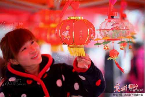 2月3日,市民在安徽省亳州市区街头挑选灯笼。当日是农历正月初四,安徽省亳州市场上的各种灯笼纷纷登场亮相,前来买灯的市民络绎不绝。 刘勤利摄/光明图片