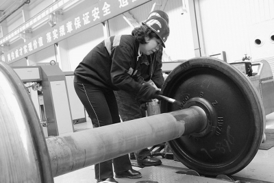 检修车间里,工人们在工位上,分工序检修货车车厢。刘书记介绍说,检修车辆每个工序都马虎不得,因为漏检任何一个故障,都可能造成行车事故。他推荐记者到车轮探伤工序看看,尤其是看看车辆段唯一的一级高级技师、“全国五一巾帼标兵”、铁路“火车头”奖章得主、探伤工高全英。