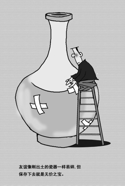 | 友谊像刚出土的瓷器一样易碎,但保存下去就是无价之宝。 薛 飞作 |