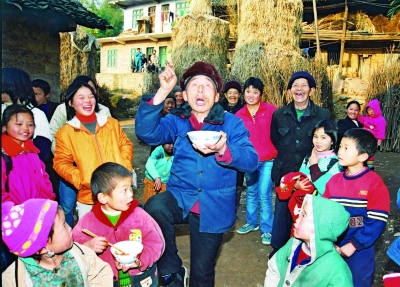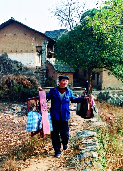 他随意在邻家借来一张方桌,将那根专用板凳往桌面上一放,插上扁担,他的老伴向会英也过来帮忙,很快支好了他的人生小戏台。院子里的老少妇孺闻声赶来,抱婴孩儿的、背篮子的、扛锄头的、端着饭碗边吃边走的,把个小而高耸的戏台围在了中间。“永安好久没唱被窝戏了!”大家急不可耐。