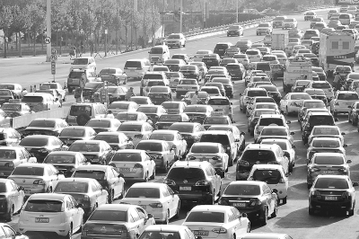 5月3日,车辆在G4京港澳高速公路石家庄裕华路口缓慢通行。 新华社记者 朱旭东摄