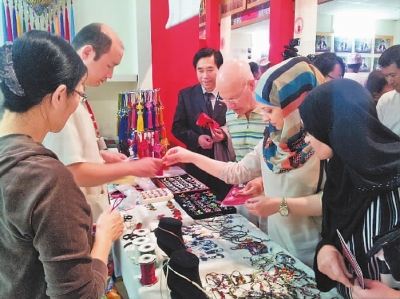 本报马斯喀特2月11日电(记者李宏伟)2015第十五届阿曼马斯喀特艺术节“璀璨中华”欢乐春节行活动10日迎来了“中国日”。受中国驻阿曼大使于福龙之邀,马斯喀特市阿米拉特州州长谢赫叶海亚·蒙泽里,以及各国驻阿曼使节等三百余名嘉宾来到位于阿曼阿米拉特公园内的中国馆参观。