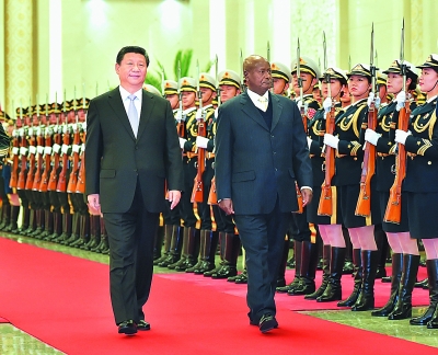 习近平指出,中乌传统友谊深厚。建交53年来,两国各领域友好互利合作成果丰硕,给两国人民带来实实在在的实惠。穆塞韦尼总统是中国人民的老朋友,是中乌关系发展的坚定推动者。两年前,我们在南非德班金砖国家领导人第五次会晤期间举行会见,就全面发展中乌关系达成重要共识。中方愿意同乌方一道,落实双方达成的共识,全面深化互利合作,为中乌关系发展注入新动力。
