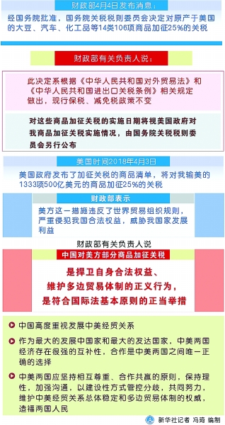 中国拟对美国大豆、汽车、化工品等十四类一百零六项商品加征百分之二十五关税