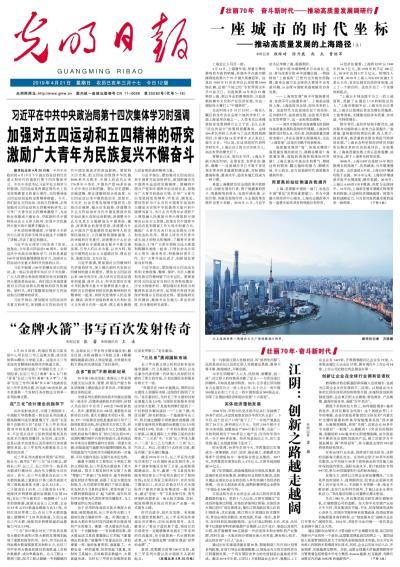 新华社北京4月20日电 中共中央政治局4月19日下午就五四运动的历史意义和时代价值举行第十四次集体学习。中共中央总书记习近平在主持学习时强调,五四运动是我国近现代史上具有里程碑意义的重大事件,五四精神是五四运动创造的宝贵精神财富。今天,我们纪念五四运动、发扬五四精神,必须加强对五四运动和五四精神的研究,以引导广大青年在五四精神激励下,为决胜全面建成小康社会、夺取新时代中国特色社会主义伟大胜利、实现中华民族伟大复兴的中国梦不懈奋斗。