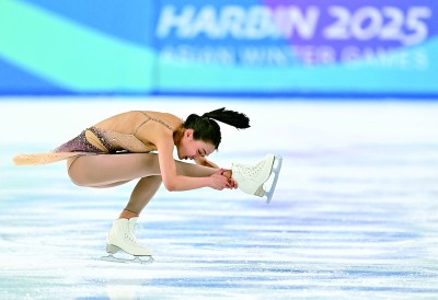 2月13日,中国选手朱易在花样滑冰项目女子个人滑自由滑比赛中。新华社发