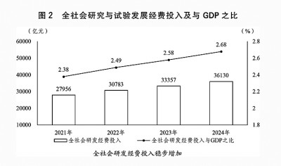 (三)深入实施创新驱动发展战略,创新引领作用进一步发挥。加快健全支持全面创新的基础制度,科技成果加速向现实生产力转化。全员劳动生产率17.4万元/人、实际增长4.9%,全社会研究与试验发展(R&D)经费投入3.6万亿元、实际增长8%,基础研究经费投入占研发经费投入比重为6.91%,每万人口高价值发明专利拥有量达到14件。(见图2)