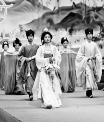 山东省菏泽市曹县依托电商资源优势,聚力发展汉服产业,打造“云想衣裳花想容”的美丽经济,吸引了近2万名大学生返乡就业、创业。图为模特在曹县汉服2025春夏新品发布会上走秀。新华社发