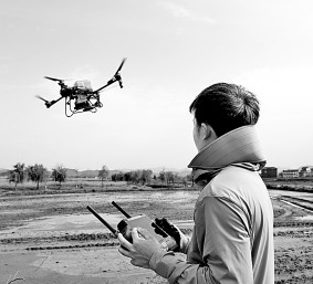 走进山东济宁嘉祥县马村镇,一望无际的麦田带着醉人的绿跃入记者眼帘。轻微的嗡嗡声传来,只见四台无人机组成一排,正在麦田上空轻舞。细密的药剂如薄雾般均匀洒落,为小麦披上一层“防护衣”。马村镇种粮大户山保领站在田边,目光追随着无人机,脸上满是欣喜:“以前人工喷药费时费力,还担心踩坏麦苗。现在这无人机喷药又快又好,省心多了!”