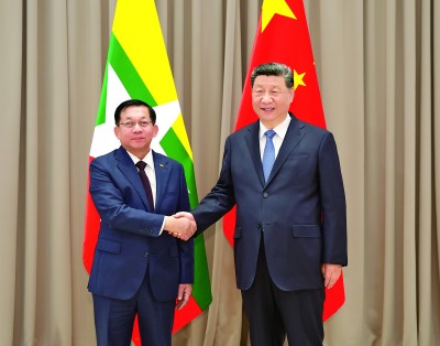 习近平指出,中缅是同甘共苦、守望相助的命运共同体。中缅两国共同倡导的和平共处五项原则和万隆精神历久弥坚,时代价值不断凸显。今年是两国建交75周年,中方将秉持睦邻、安邻、富邻、亲诚惠容、命运与共的理念方针,同缅方深化命运共同体建设,高质量共建“一带一路”,落实好全球发展倡议、全球安全倡议、全球文明倡议,给两国人民带来更多福祉。前不久,缅甸曼德勒强烈地震造成重大人员伤亡和财产损失,中方最早派出救援力量,援助紧急人道主义物资,愿继续提供帮助,支持缅方重建家园。中方支持缅甸走符合本国国情的发展道路,维护主权独立、领土完整、国家稳定,稳妥推进国内政治议程。双方要深化战略合作,持续推进中缅经济走廊重点项目建设。希望缅方切实保障在缅中方人员、机构、项目安全,加力打击网赌电诈等跨境犯罪。双方要共同捍卫以联合国为核心的国际体系和以国际法为基础的国际秩序,维护发展中国家正当权益。