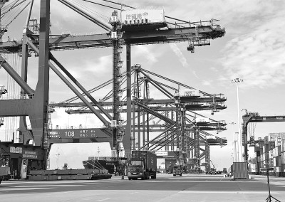 近年来,海南边检机关促进通关服务和口岸管理制度化、智能化、规范化,提升口岸通关效率。据海口出入境边防检查总站统计,近三年来,免签入境海南旅客占入境外国旅客的81%,入境外国旅客占入境旅客总数比例达42%;船舶边检通关时间和船员换班手续时间分别减少20%和30%。图为5月28日拍摄的海南洋浦国际集装箱码头。新华社记者 金皓原摄