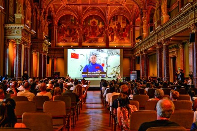 6月6日,由中国载人航天工程办公室、中国驻匈牙利大使馆和匈牙利科学院共同举办的大型天地对话科普活动“天宫课堂”在位于匈牙利首都布达佩斯的匈牙利科学院举行,中匈双方代表近300人参加。图为人们参加“天宫课堂”。新华社发