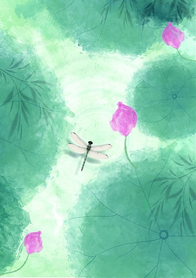 以现代插画语言重构古典诗词场景,让千年的夏日诗意在清新的色彩与简洁的造型中,焕发出贴合当下审美的清凉意趣。