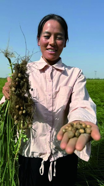 通过“工程+生物”的技术手段,一座座沙丘穿上了“格子衫”,戴上了“绿围脖”。荒漠变绿洲,百姓的荷包也鼓了起来。肉苁蓉,当地人口中的“沙漠人参”,需要寄生在植物根系上才能成长。随着中国科学院新疆生态与地理研究所策勒沙漠研究站破解出肉苁蓉的生长密码,在沙漠中种植肉苁蓉成为当地人的致富经。在巴音郭楞蒙古自治州且末县,由9名退役军人组成的老兵治沙队,已经累计完成1.1万亩沙漠绿化,每年肉苁蓉产值突破600万元。
