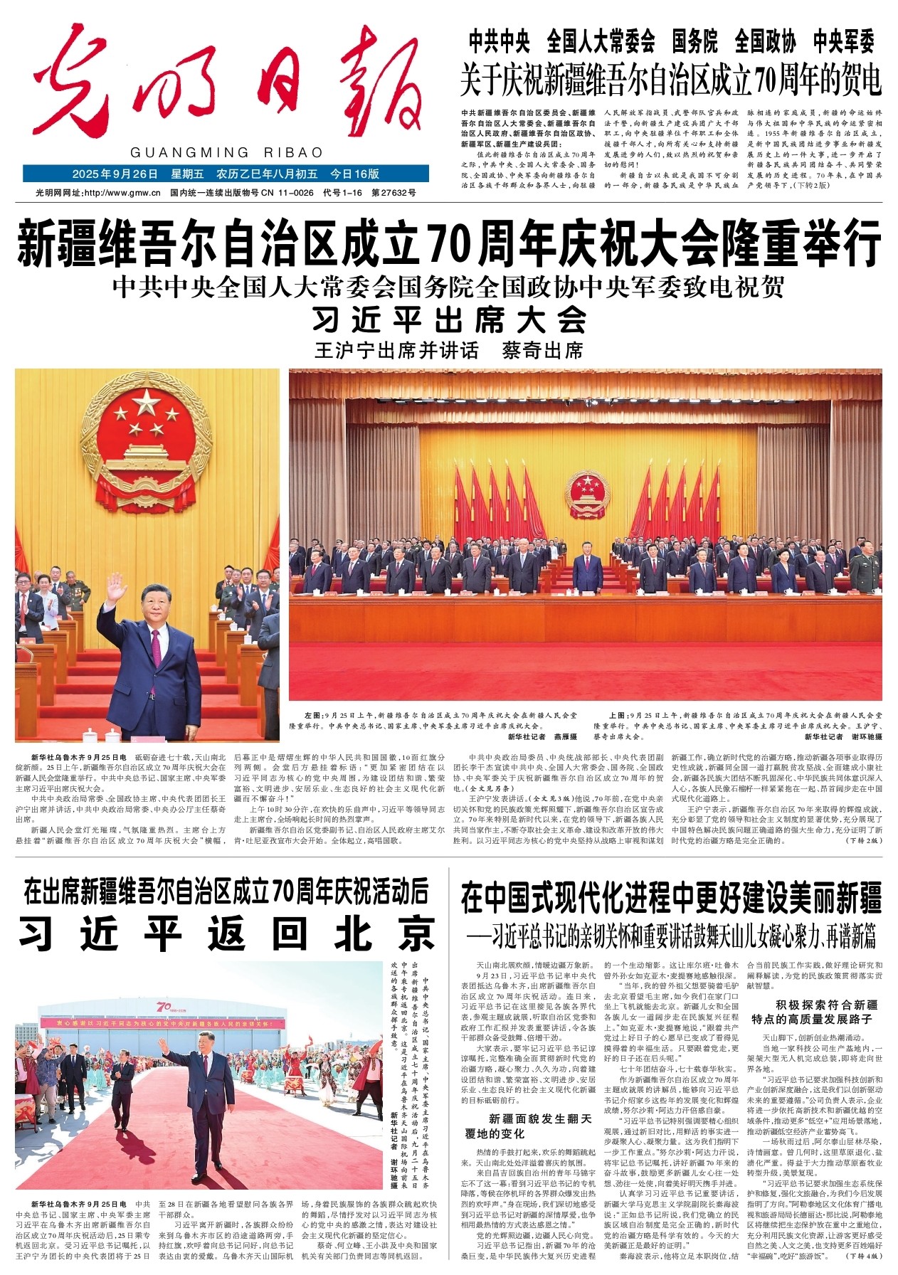 新疆维吾尔自治区成立70周年庆祝大会隆重举行