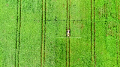 当车窗外的景象悄然翻绿,便是到了吐鲁番。瞧,葡萄藤下,一串串结实饱满、晶莹剔透的葡萄随风轻摇,红紫淡绿,美丽极了。可不是吗,一到了丰收的季节,新疆就成了色彩艳丽的“调色盘”:吉木萨尔满地圆滚滚的金黄色打瓜正等着机械脱籽;安集海晾晒的辣椒把田野染得火红;芳草湖农场的棉桃朵朵花开白如雪海……