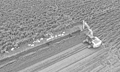10月11日,河南省焦作市孟州市城伯镇西后津村农民在田间抢收铁棍山药。新华社发