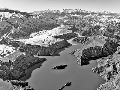初冬时节,新雪覆上新疆昌吉回族自治州玛纳斯县肯斯瓦特景区的山峦,一池碧水在阳光下波光粼粼、熠熠生辉,与银装素裹的延绵山峰交相辉映,构成了一幅静谧而壮美的冬日画卷。何龙摄/光明图片