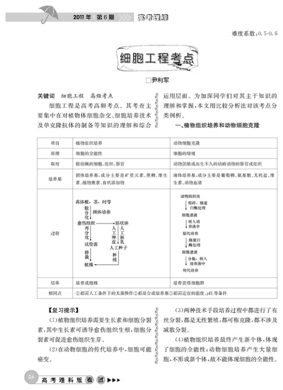 细胞工程考点