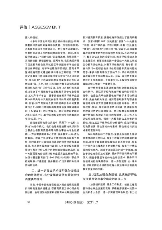 突出学术性和群众性特点,充分发挥江苏省教育——评估专委会的重要作用