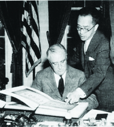 胡适向美国总统罗斯福介绍中美友好万人签名书