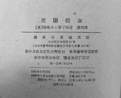 1957年,我被错划为“右派分子”。1958年处理“右派”时又被天津市高级人民法院以历史反革命罪判处管制三年,同时剥夺政治权利三年。南开大学让我在经济系资料室接受改造,每月发给生活费60元。先是,我翻译了詹宁斯的《英国议会》一书,到1959年商务印书馆出版时,我已被划为“右派”,只能用笔名蓬勃,稿酬减半;我原来还与上海人民出版社订有翻译合同,此时也被单方面取消合同并追缴预支的稿费,我只得以商务的稿费去偿还上海人民出版社,自己分文未得。