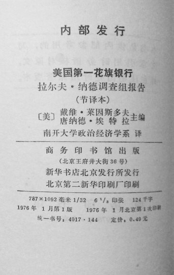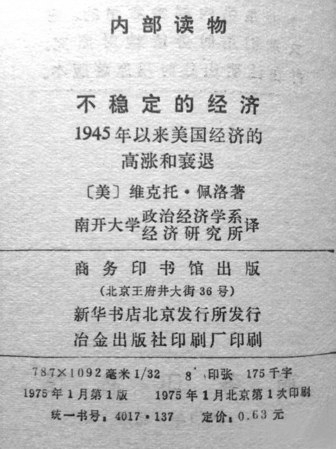 “文革”后期,商务印书馆荐来《不稳定的经济》《美国第一花旗银行》和《垄断资本》三本书,均由我翻译,当时译书都没有稿酬,署名也只能是南开大学政治经济学系。最近,商务印书馆重新出版《垄断资本》一书,在与南开大学经济系确认后,译者更正为我的名字。