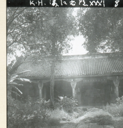 营造学社的照片也展示了湔江书院的详细布局,大门悬山顶,门前有对石狮子。进入院中,穿过一条狭窄的巷子,柏树、槐树遮天蔽日,前殿檐下悬着“绛帐谈经”“为国求贤”“人文渊薮”三块木匾,东汉大儒马融常坐在绛帐中为生徒讲授,后人即以绛帐为师门称谓。