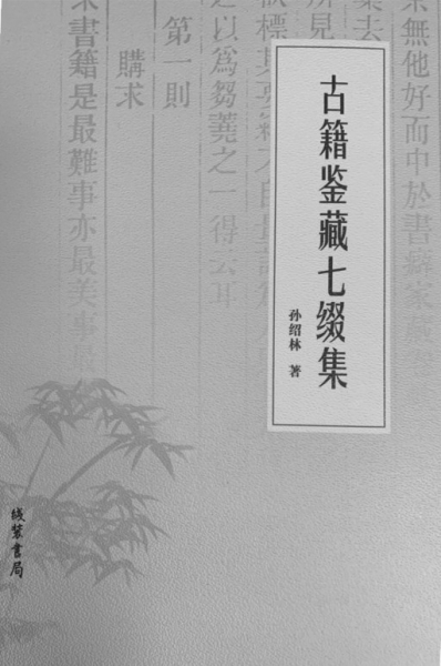 该书是从对国家古籍定级标准的讨论切入相关问题的。2006年10月,《古籍定级标准》正式实施。2015年7月,《汉文古籍特藏藏品定级》的第一部分《古籍》正式实施。这一新版本的标准可视为对2006年标准的修订。《古籍鉴藏七缀集》针对目前古籍定级标准的不明确、不完善之处,做了多方面论述,提出了自己的一套具有实践价值的古籍鉴定和评估的方法体系。就此,笔者采访了孙绍林先生。