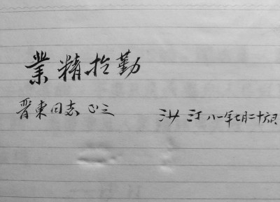 1981年7月26日,我在成都听沙老讲述文学经历,收拾记录本准备起身告辞之时,老人家微笑凝视着我,拿起方桌上的毛笔,在我的笔记本上题写了“业精于勤”四个娟秀苍劲的字,下面附写“晋东同志正之”。既给予我勉励,又提出警示和希望。