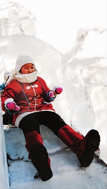 | 冰天雪地迎新年1月1日,一位小朋友在玩冰滑梯。当日,众多市民和游客来到冰城哈尔滨市的各个冰上游乐场,在冰天雪地中迎接新年。(新华社记者 王建威摄) |