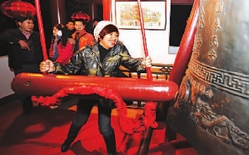| 欢乐迎新年1月1日凌晨,一名市民在广西柳州驾鹤山撞钟迎新年。每年元旦和春节,不少柳州市民都会来到驾鹤山撞钟,辞旧迎新,祈福祝愿。新华社发 |