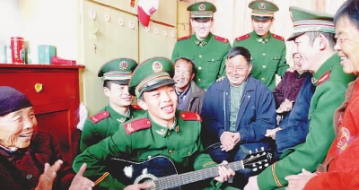 欢歌笑语敬老人1月2日,济南边检站官兵到驻地敬老院慰问孤寡老人,用歌声和微笑给孤寡老人们带去节日的问候。(本报通讯员 杨军、李娜摄)