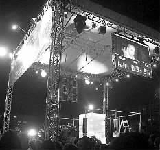 图为迪恩新年走出冰柱庆贺新年现场。(周林雁 摄)
