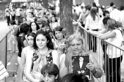 1月5日,在阿根廷首都布宜诺斯艾利斯的国会大厦前,众多市民排队等候向刚刚去世的著名歌手桑德罗遗体告别。现年63岁的桑德罗4日因接受器官移植手术后出现严重并发症在阿根廷门多萨市去世。桑德罗从上世纪70年代开始成为阿根廷流行乐坛的领军人物之一,影响了几代阿根廷歌迷。桑德罗在整个美洲大陆都享有盛誉,因此又被称为“美洲的桑德罗”。新华社发