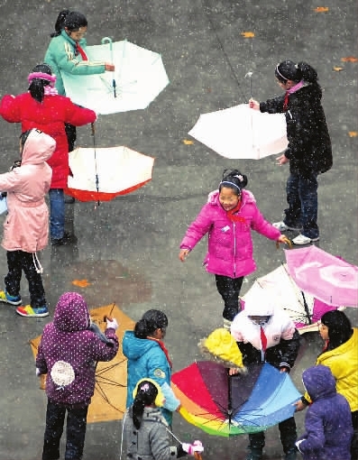1月6日,温岭市方城小学的学生们在雪中玩耍。当日,浙江温岭迎来2010年的第一场雪,给人们带来惊喜和欢乐。新华社发(吴鹏飞摄)