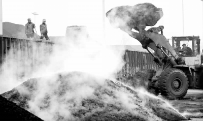 1月11日,连云港铁运工人在货场装运电煤。连日来,江苏省连云港铁运部门加大电煤运输力度,开辟电煤绿色通道,实施“保证重点、电煤优先、有煤必装”的运输方案,保障冬季电煤供应。据悉,1月份以来,连云港铁运部门已完成电煤装运2000余车皮。新华社发